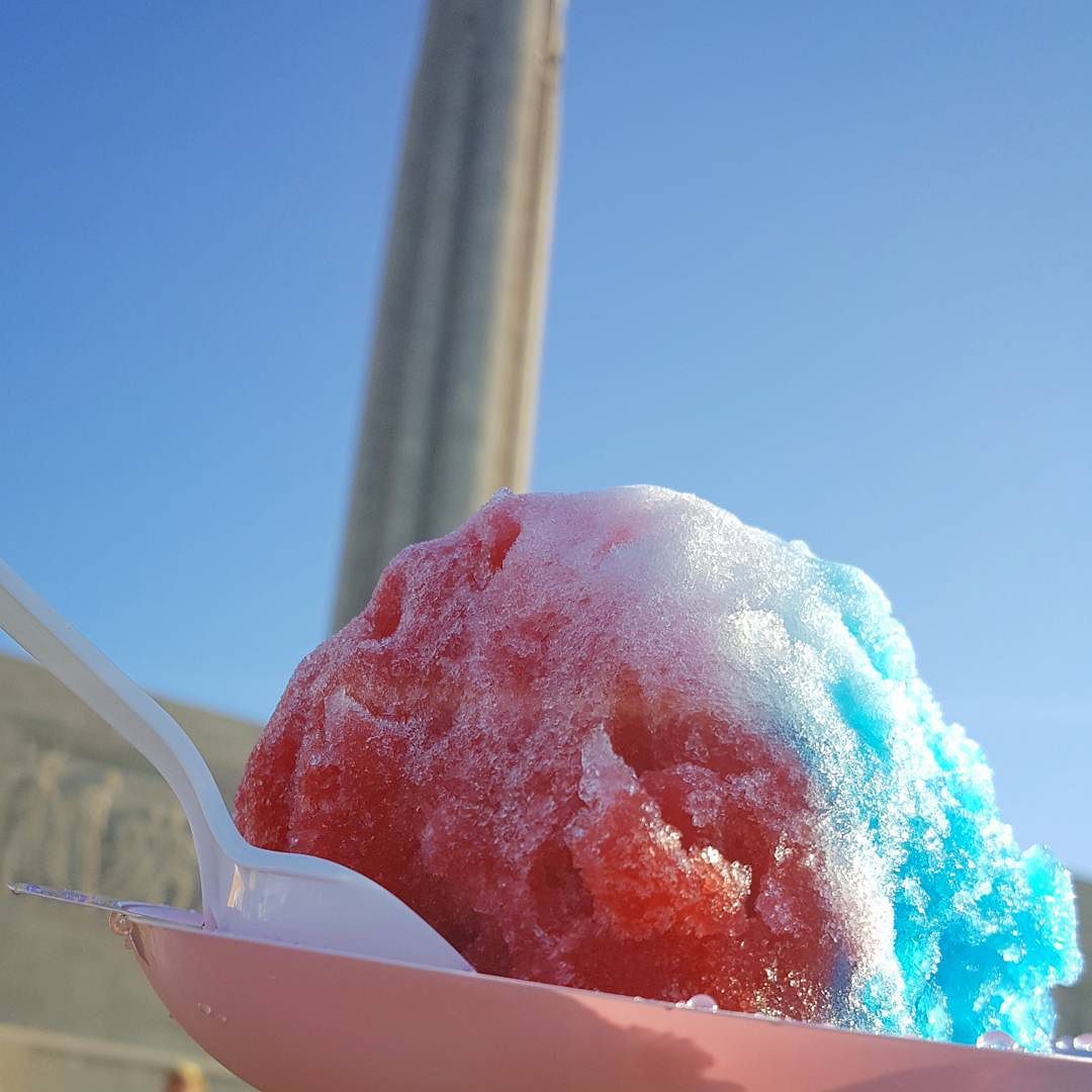 Feeling patriotic at the Liberty Memorial enjoying a red, white, and blue shaved ice from Ohana’s. Tyler created this cherry and blue raspberry combination for upcoming 4th of July.